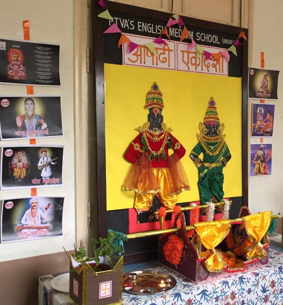PTV English Medium Andheri celebrates Aashadhi Ekadashi in a virtual manner. The efforts put in by the teaching and non-teaching staff members need to be applauded. It wasn’t easy to bring all the students and their parents on one virtual platform with a lot of connectivity issues popping up all the while. …but we did it….special mention of Harshada MulmuleAarti Shirish Halbe NeetaSupriya Salkar and most importantly their leader Mrs. Mrinalini Mhetre for their tireless work to make this first ever virtual programme a great success !