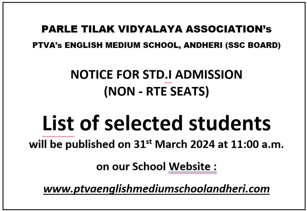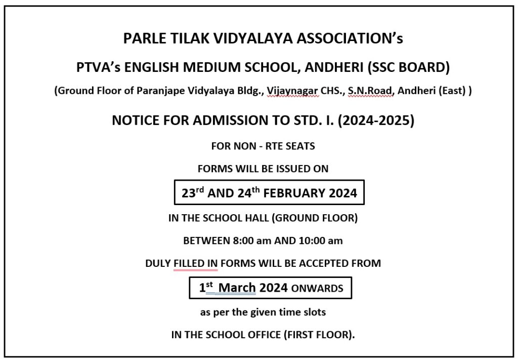 Admission Notice to Std. I (2024-2025)