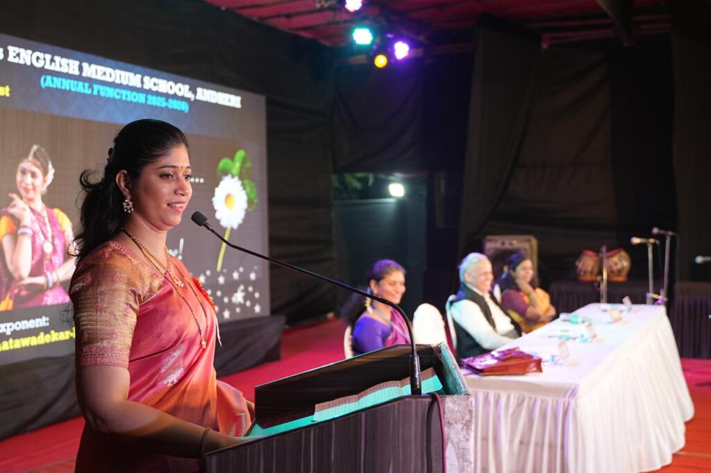 In her address, the Chief Guest Mrs. Bhakti Bhatawadekar-Lalit inspired the young students to pursue an art form of their choice and master it with patience, perseverance, practice and presentation with perfection.