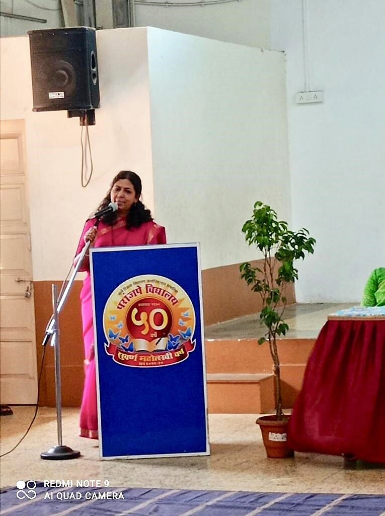 The school principal Mrs. Mrinalini Mhetre emphasized the importance of keeping oneself updated and keeping the flag of the school flying high by being empathetic, outgoing, and dynamic, while Miss Aarti Halbe shared her experiences as a founder teacher.