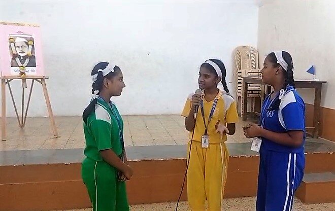 Drama presented by the students of class 6th and seventh – Dialogue based and other important topics by class 5th to seventh through Role Play, like ‘Water is Life. ‘The importance of tree’ and ‘the importance of technology’ were depicted. Along with this, the students of class 5th and sixth presented poems depicting the love of Hindi language and the teachers presented the vocabulary of their subjects in Hindi.