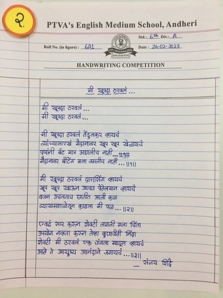 दि. २७ फेब्रुवारी २०२३ रोजी पी. टी. व्ही. एज्. इंग्लिश मीडियम स्कूल, अंधेरी