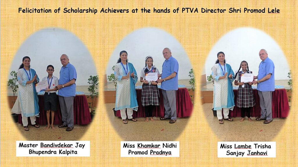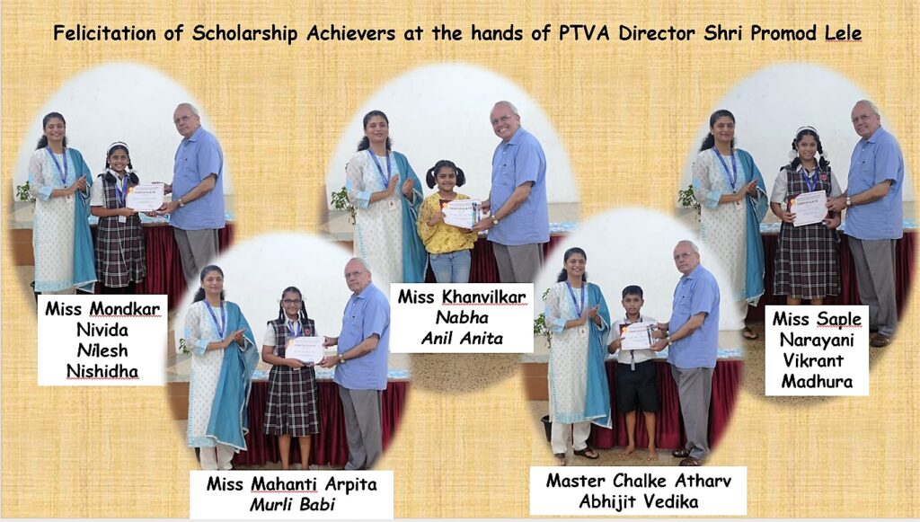 A felicitation programme for these young achievers was held in the school on Thursday 3rd August 2023. PTVA Director Shri. Promod Lele graced the event and gave a pat of appreciation on the back of these scholars through his speech of encouragement and by rewarding them with appreciation certificates. Shri Lele advised the students to balance academics with co-curricular activities for the all-round development of their personalities.