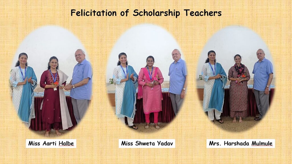 Principal Mrs. Mrinalini Mhetre appreciated the scholarship achievers and advised them to stay focused and engaged in constructive activities in their leisure time. The teachers who guided these students for the scholarship examination, Miss Shweta Yadav, Miss Aarti Halbe, and Mrs. Harshada Mulmule were also felicitated for their diligent efforts in bringing out the best in these students through after-school coaching and preparing them for the competitive examination. School topper Master Jay Bandivdekar spoke about his experience of attending the special coaching in the school and his study schedule. Aarti Halbe teacher gave a few tips to the scholarship aspirants of the 2023-24 batch. Parents of the merit holders were invited to attend the programme. On behalf of the parents, Mrs. Kalpita Bandivdekar and Mrs. Pradnya Khamkar expressed their gratitude toward the school Management.