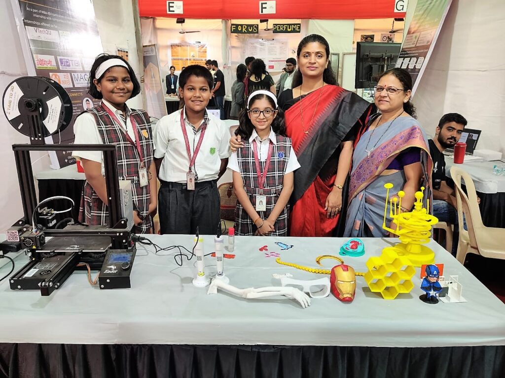 A start-up expo was held at PTVAIM’s COEI on 4th March 2023. The expo was systematically planned where numerous stalls of a variety of start-ups were set up. Three students of Std. 6 of PTVA’s English Medium School – Tanisi Kapoor, Kshitij Patkure amd Manswi Patkure were selected to present the Human Cells model prepared by them in the 3D Printing stall. These students were guided by Shri. Mayur Khanvilkar (COEI Resource Person). The students got an opportunity to showcase their innovative thinking and entrepreneurial skills to various investors, industry experts, and the extended community.