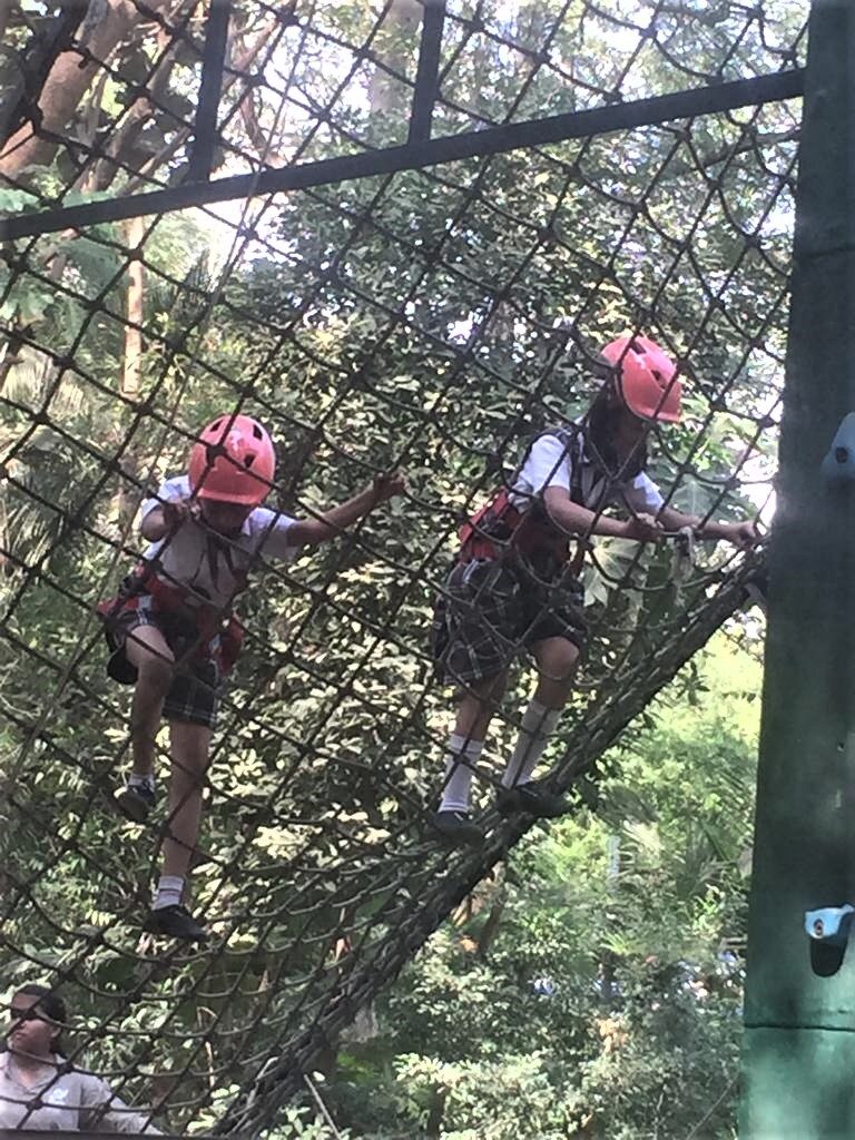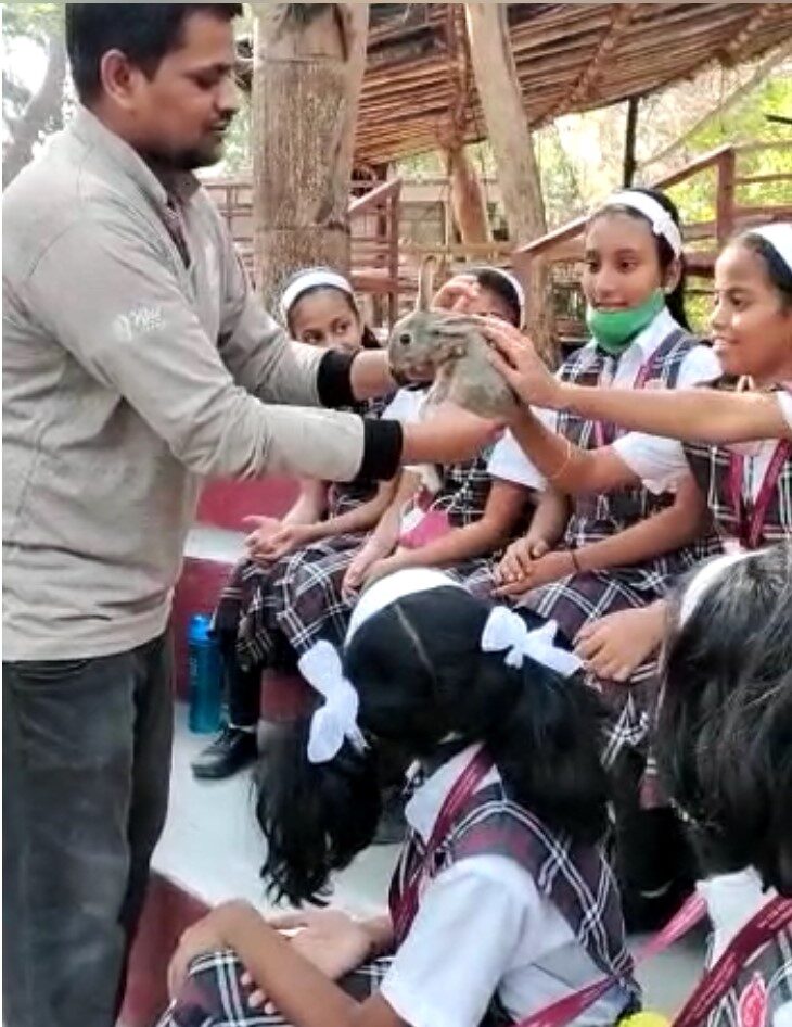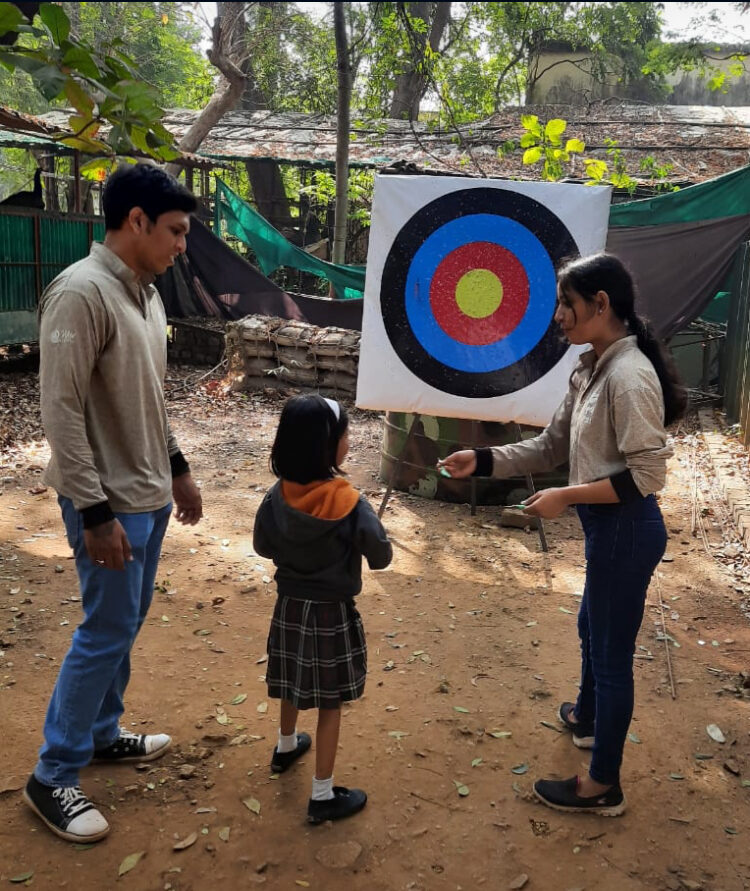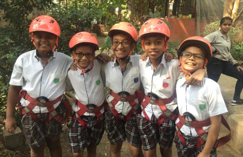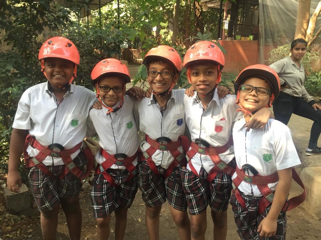 The students were extremely excited and kept singing songs on the bus till they reached the venue. They were welcomed by the staff of the nature park and served delicious breakfast and were grouped for various exciting and challenging activities like Personality Development Games, Nature Trail, Pet Animal Care, Archery, Cave Tunnel, Vertical Ladder, and Zip-lining.