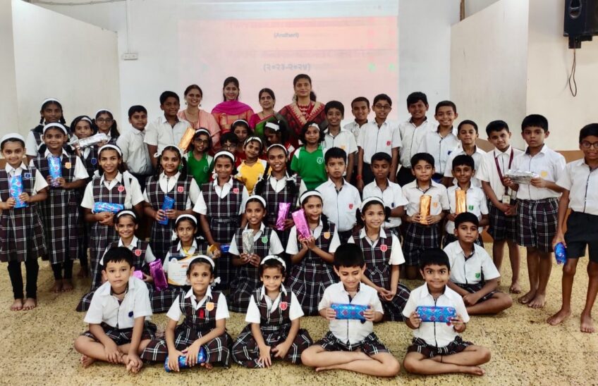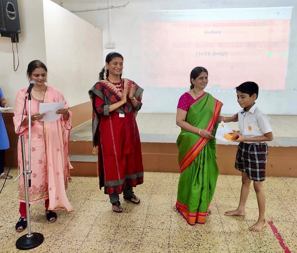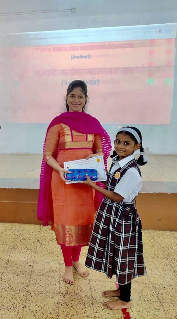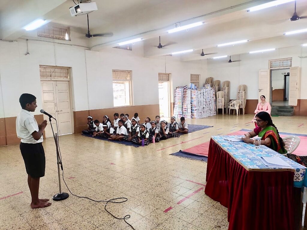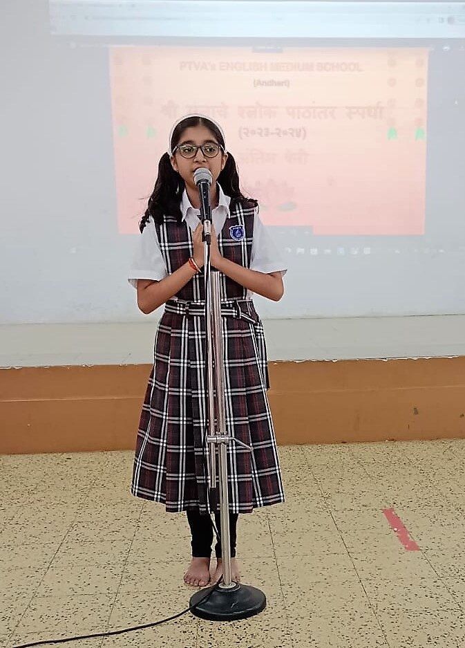 “Make Shloka Chanting a part of your daily routine…” Competition Judge Mrs. Sneha Bhatawadekar advised the participant students of the Manache Shlok Recitation held at PTVA’s English Medium School, Andheri on the occasion of Guru Purnima. In her address, she explained the teachings of Samarth Ramdas Swami – how our mind is our friend, our enemy, and how it can be our Guru. Manache Shlok, a collection of positive affirmations to the mind, primarily focuses on our own internal dialogue, with ourselves, and with our mind. These shlokas are an important moral influence in Maharashtra and Marathi literature.