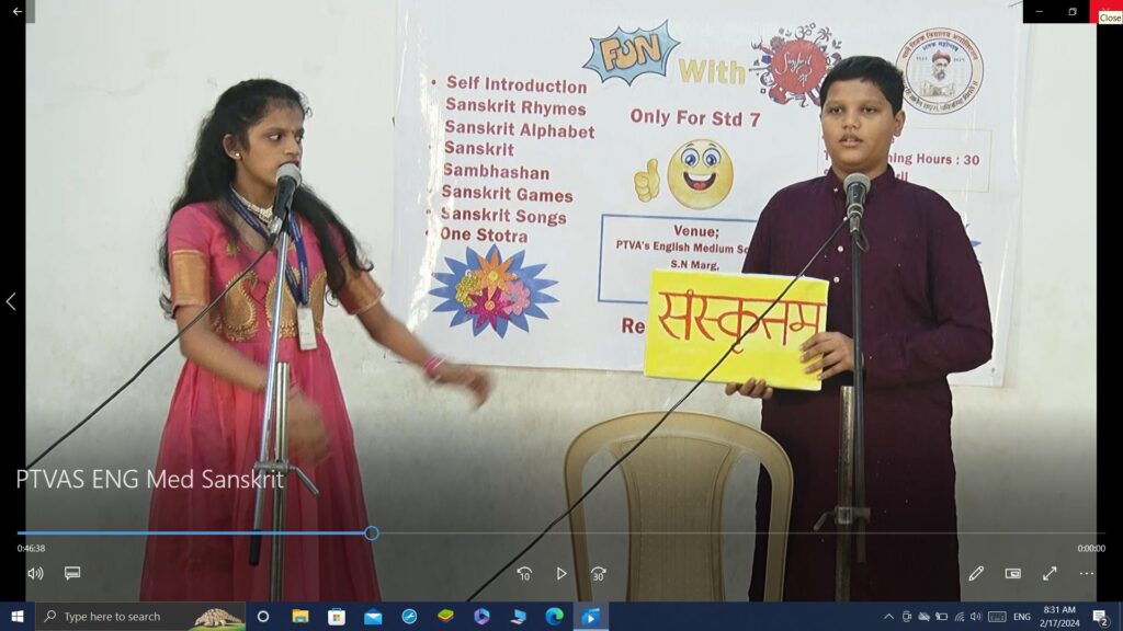 PTVA’s English Medium School, Andheri introduced Sanskrit language to the students of Std. 7 with a beginner’s course – Fun with Sanskrit. This course was curated by Dr. Shreehari Gokarnakar, a passionate Sanskrit Teacher.