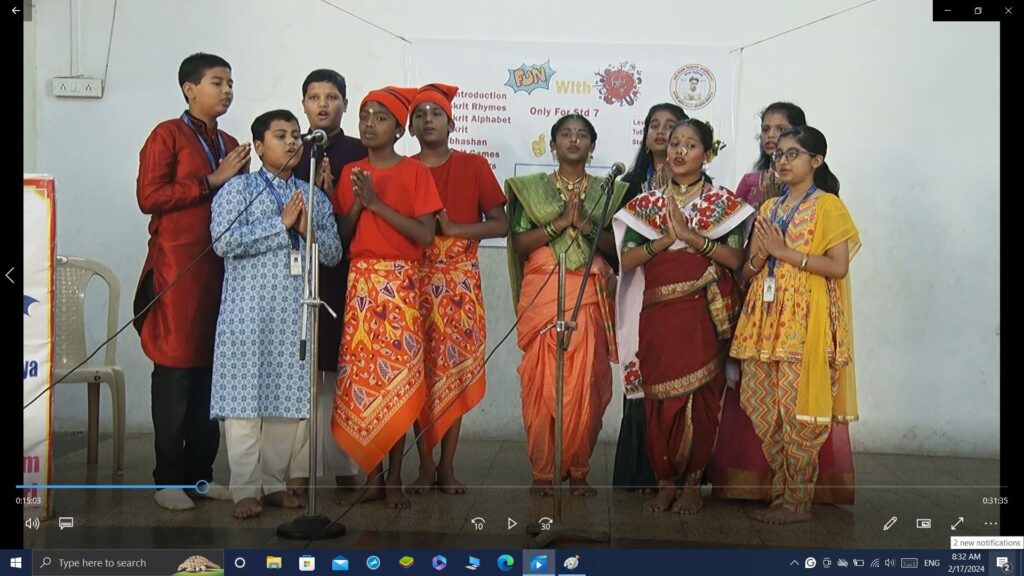 The culmination of this course was arranged on 20th January 2024 and PTVA Director Shri. Pramod Lele graced the occasion. The vibrant programme put up by the students was highly appreciated by the guests which also included parents in attendance. Students showcased their story-telling, communication, singing, and dance skills. The anchoring too, was done in Sanskrit by the students. Shri. Lele appreciated the efforts put in by all the students and specially congratulated Dr. Gokarnakar for his commendable contribution to making the Sanskrit language popular among the young students. Principal Mrs. Mrinalini Mhetre spoke about the connection of Sanskrit with Sanskriti (our culture) and extended her best wishes to the students for their journey ahead with the Sanskrit language.