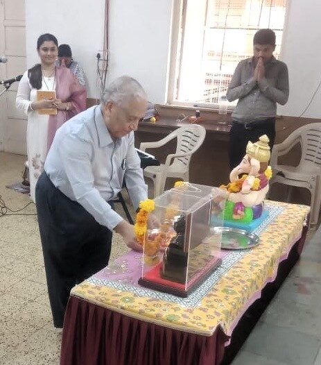 The programme started on an auspicious note with Ganesh Pujan and offering tribute to the inspiration of the institution Lokmanya Tilak followed by a melodious and energetic group song by the students. The Music Teacher Mrs. Kaavya Rane guided them.