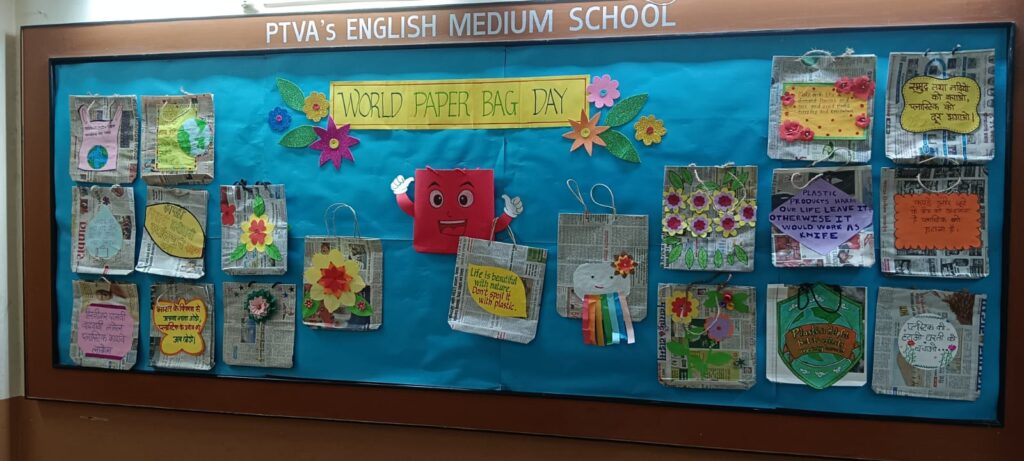 ‘’Why use plastic bags which are hazardous to our nature when we have easy access to paper bags?’’ asked Darsh Salvi (Std. VI) in his assembly speech on World Paper Bag Day observed on 12th July 2023 at PTVA’s English Medium School, Andheri.