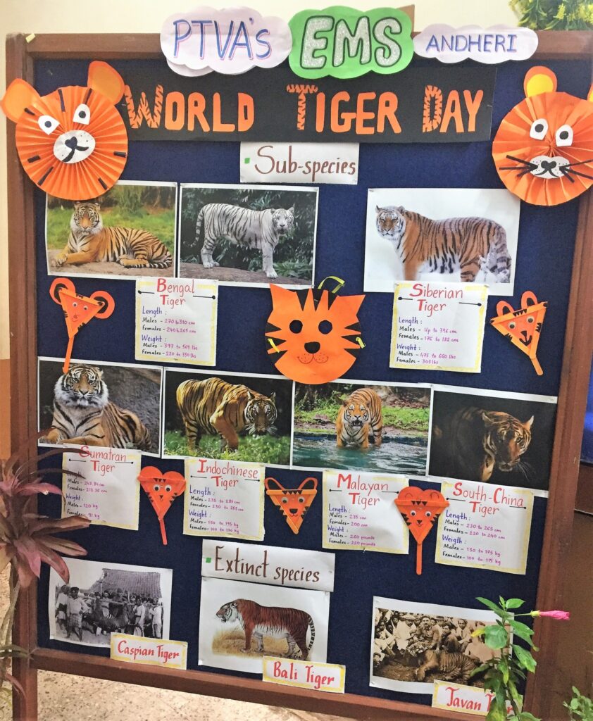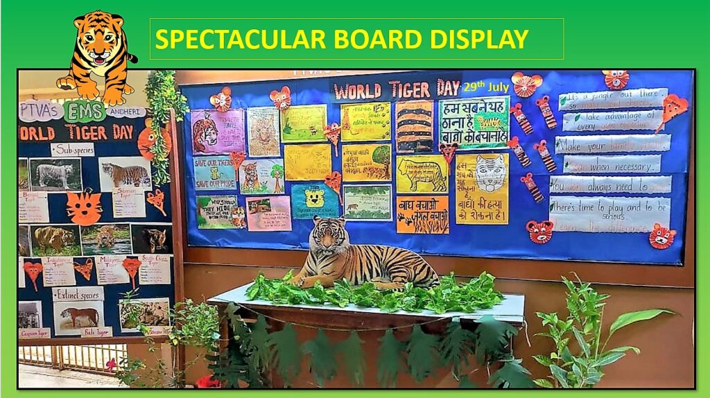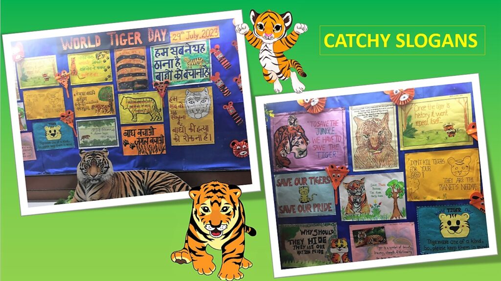 The spectacular display board showcased some catchy slogans written by the students along with their craft articles like tiger masks, paper-fan tigers, and tiger bookmarks prepared under the guidance of Art teacher Ashwini Naravane.