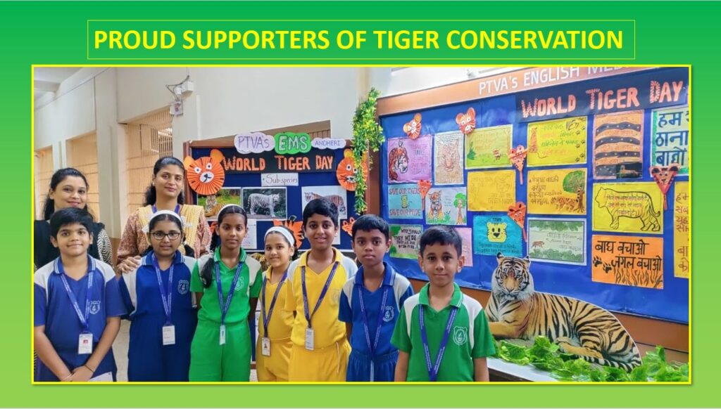 This was the message given by the students who participated in a special assembly held at PTVA’s English Medium School, Andheri to protect the most magnificent creature in the entire world, the tiger, on World Tiger Day observed on 29 th July 2023. It was the Nature Club activity of the school to raise awareness about the significant role played by this splendid but endangered big cat in the
