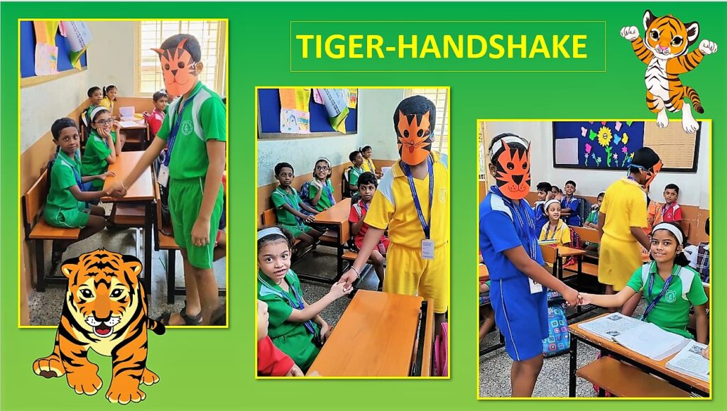 The assembly was followed by a rally of students organized under the guidance of the Nature Club in charge Aarti Halbe teacher to spread awareness on how we can work together so humans and tigers can cohabit peacefully. Students wearing tiger masks visited the lower-grade classes. It was a thrilling experience for the little ones as they shook hands with the ‘tigers’.